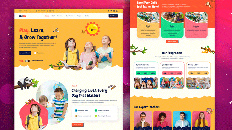 Kiddoz – Preschool & Education Elementor Template Kit - Free Elementor JSON