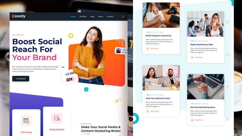 Boostly–Creative Social Media Agency Elementor Kit - Free Elementor JSON