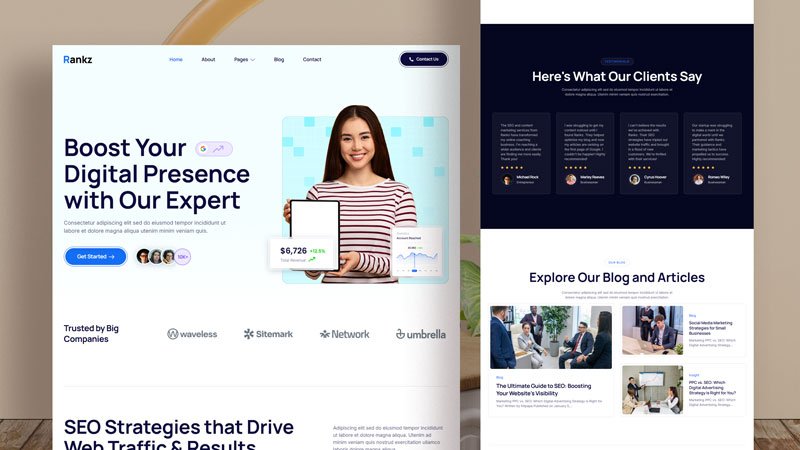 Rankz–Marketing & SEO Agency Elementor Template Kit - Free Elementor JSON