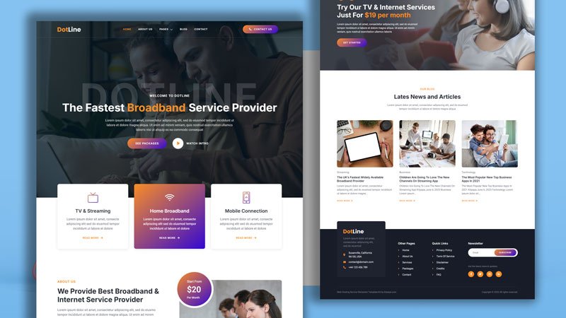 Dotline – Broadband, ISP & Business Website Elementor Kit - Free Elementor JSON