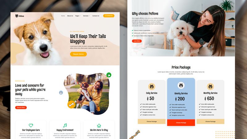 PetLove–Pet Lovers Care & Services Elementor Kit - Free Elementor JSON