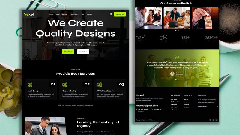 Vexel–Dark Business Web Design Agency Elementor Template Kit - Free Elementor JSON