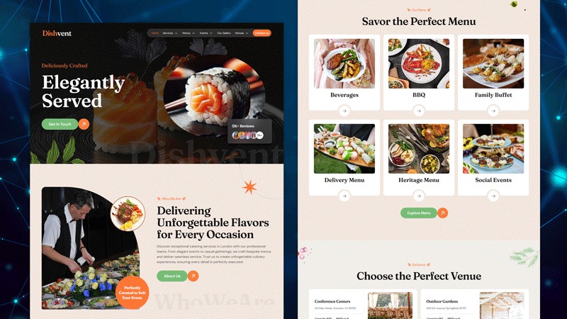 Dishvent – Professional Chefs & Catering Elementor Kit - Free Elementor JSON