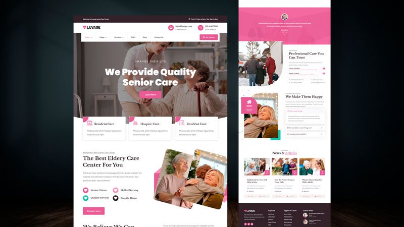 LuvAge – Retirement Home & Elderly Care Elementor Template Kit - Free Elementor JSON