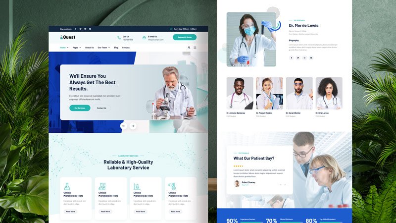 Quest – Lab & Medical Research Elementor Template Kit - Free Elementor JSON