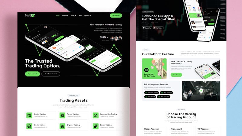 Stockz – Smart Trading & Investment Elementor Template Kit - Free Elementor JSON