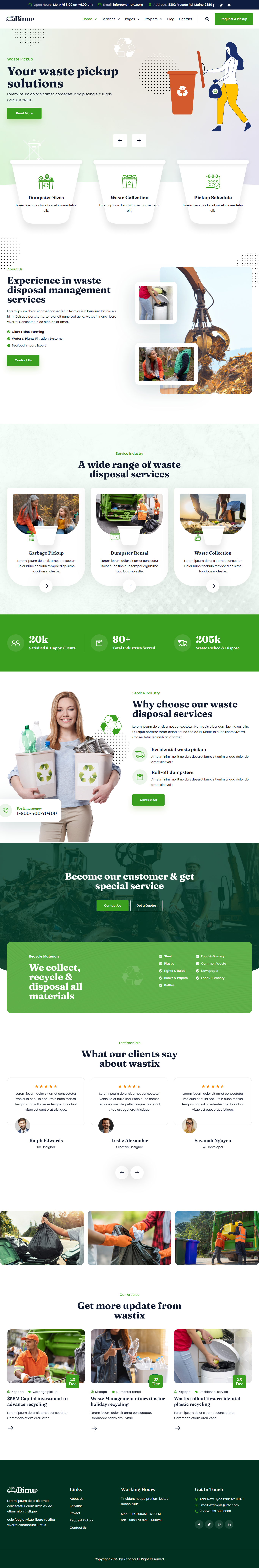 BinUp – Garbage Collection & Disposal Elementor Template Kit - Free Elementor JSON