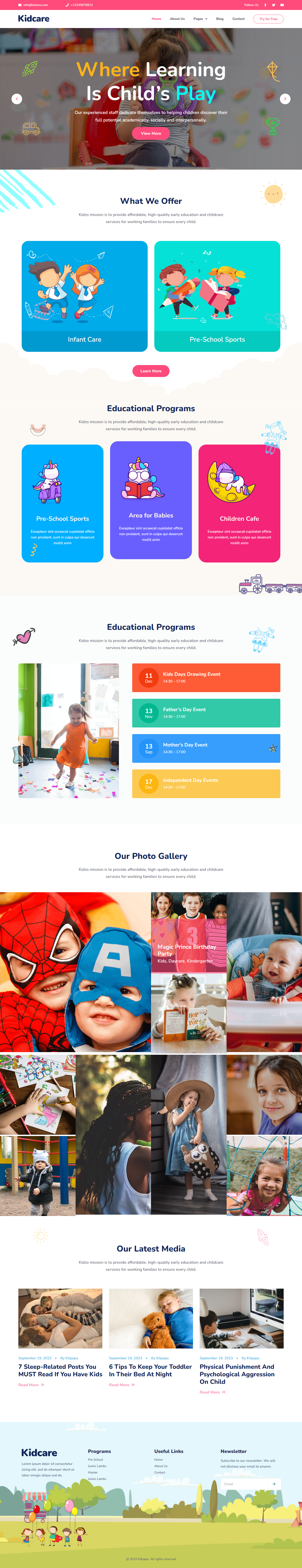 Create a delightful and engaging Kindergarten, Kids & Child Care website effortlessly with our beautifully crafted Elementor Template Kit. Designed with care, this kit offers ready-to-use pages including Blog, Events, Contact Form, and more. With a 100% responsive design, retina-ready visuals, and easy customization, you can build your website without writing a single line of code!