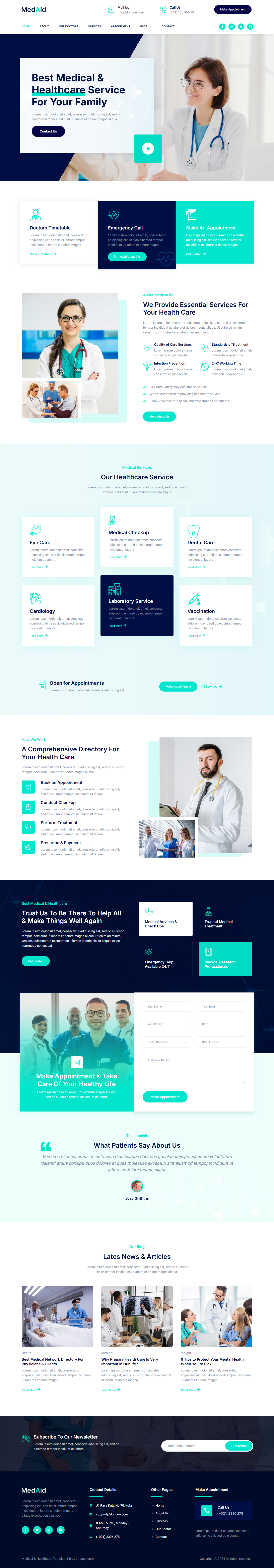 Create a professional healthcare website effortlessly and showcase your medical services with style using Medaid.