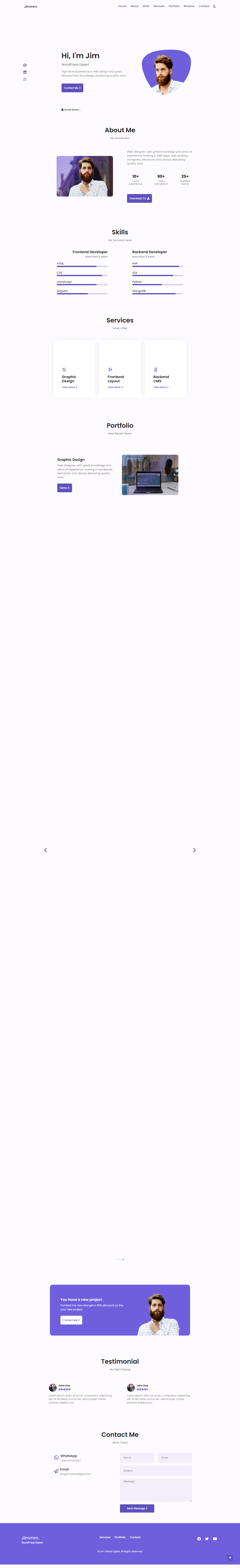 This is a modern One-Page Creative Website Template, designed to be fully responsive across all major devices. Built with Elementor Pro, it offers complete flexibility and ease of customization.