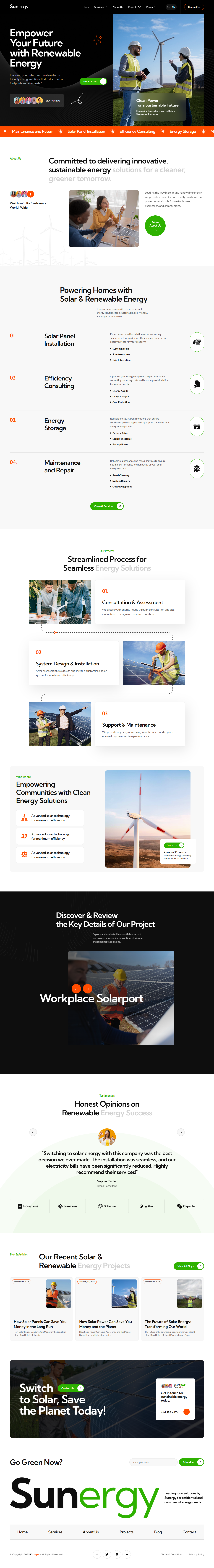 Built with Elementor for hassle-free customization, it comes with a fully responsive and SEO-optimized layout, including pages like Home, Services, Projects, About, Blog, and Contact. Perfect for companies in solar energy, wind power, and other renewable energy sectors.