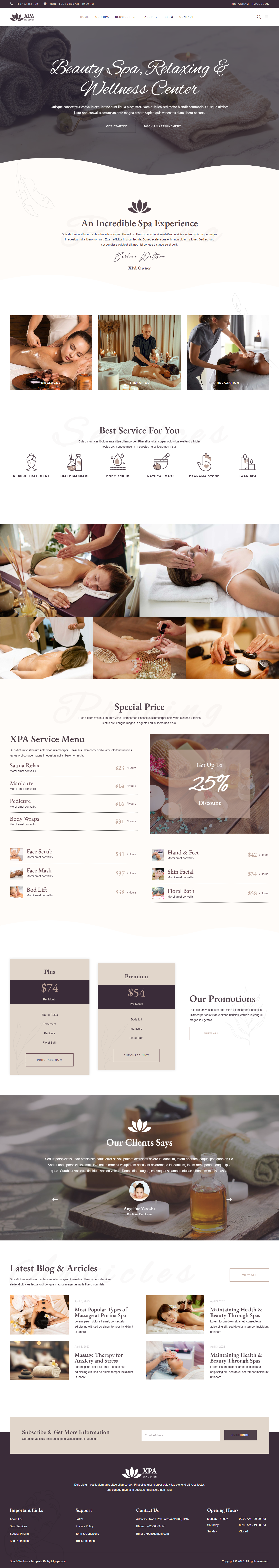 Xpa – Wellness & Spa Elementor Template Kit - Free Elementor JSON